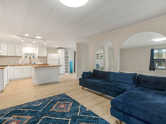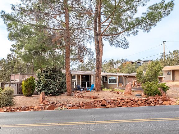 Updated Photos! Large Manuf. home w/ Attached Casita in W. Sedona! Live in one side & rent the other, or rent both! Separate Driveways & Entrances. No HOA/STR restrictions (Buyer to verify). Can be financed with Conventional, FHA or VA (if needed). Main house (app 1815 sf) has 3 bdrm, 2 ba, w/walk-in showers, large living room, bonus room and an addition that can be used as a Bdrm., studio, or workshop. Casita (app 310 sf) has been used as a successful STR and is tastefully remodeled w/private entrance, walk-in shower & kitchenette. Owner has made many recent updates & pride of ownership is evident! Large front deck w/red rock views for sun bathing & star gazing. Parking for RV or boat & a 12x12 shed for storage. A great opportunity and owner will consider all reasonable offers. Move in A list of recent updates are below: 2022 updates: Updated LVP flooring, shower, and kitchenette in casita. Gutter guards installed. 6 zone mini splits installed in main house and casita. Updated walk-in shower and floor in primary bathroom. New water softener installed. 2023 updates: Updated guest bathroom. Updated LVP flooring in bonus room and hallway. New dryer. 2024 updates: Updated kitchen cabinets and kitchen sink. Updated LVP flooring in kitchen, 3 bedrooms and living room.