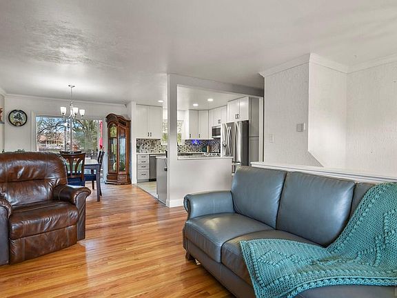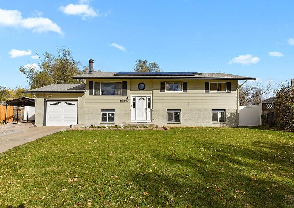 Welcome to your dream home! This 5-bedroom, 3-bath property has been beautifully updated and is ready for you to move in and enjoy. Solar panels installed, energy efficiency is already taken care of! No leases attached to the solar panel or water softener – just perks that elevate the experience. As you enter, you're welcomed into an open-concept great room featuring rich wood floors, a cozy wood-burning fireplace, and a seamless flow to the dining area. Patio doors lead to a newly built, oversized deck overlooking the expansive, private backyard—a true sanctuary perfect for relaxation or hosting gatherings. The heart of this home is the recently updated, spacious kitchen, designed for both cooking and connection. It's ready for all your culinary adventures, with ample workspace and storage for every appliance. The lower level is where function meets comfort, offering a generous family room, a large bedroom with a walk-in closet, a well-appointed office with custom cabinetry, a laundry room with backyard access. Outside, the large fenced backyard invites you to unwind among blooming gardens, a cozy patio, and a convenient storage shed. An oversized one-car garage and carport provide both security and additional storage, ideal for busy lifestyles. This home is designed to welcome, entertain, and adapt to every need—whether it's a quiet evening by the fireplace or a lively gathering on the deck. Don't miss the chance to call this masterpiece your own!