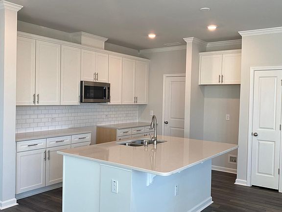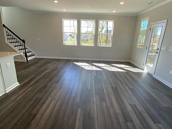 Two-story townhome featuring 3 Bed, 2.5 Bath, 1800 sq ft and one car garage with ample storage in Ridgemoor community. Main level features large open floor plan, kitchen with elegant white cabinets, quartz counter top, stainless steel appliances with gas range and wall oven with microwave. Vinyl flooring throughout first floor and wood stairs. Screened porch and a huge backyard (no homes behind, privacy indeed). Upper level has spacious 3 bedrooms, 2 bathrooms and laundry(washer & dryer included). Owners suite has its own private tiled walking-in shower, dual vanity, large walk in closet and linen closet. End unit property so additional windows with lot of natural light