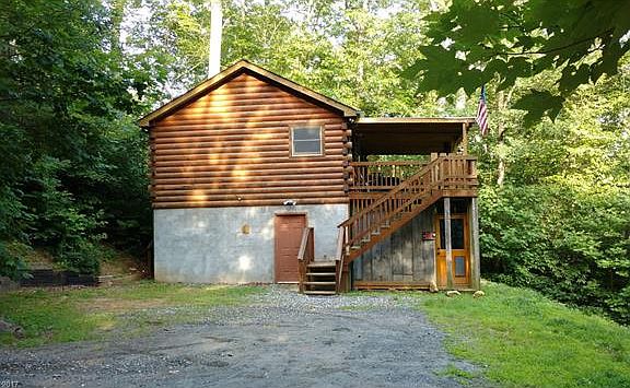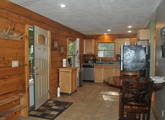 Wonderful Log Cabin on 1.41 wooded acres w/bordering creek is great place to escape! Updated, furnished & move-in ready! Relax on covered front porch w/bar & small wood stove & listen to sounds of nearby creek on lower portion of property or enjoy fire pit area in front. Main level includes 1BR/1BA w/tile flooring & carpet in BR. BSMT is finished studio w/2nd kitchen, BA, & laundry. Storage/workshop area w/utility sink. Owners successfully rent property on AirBNB. Great for tiny house lovers!
