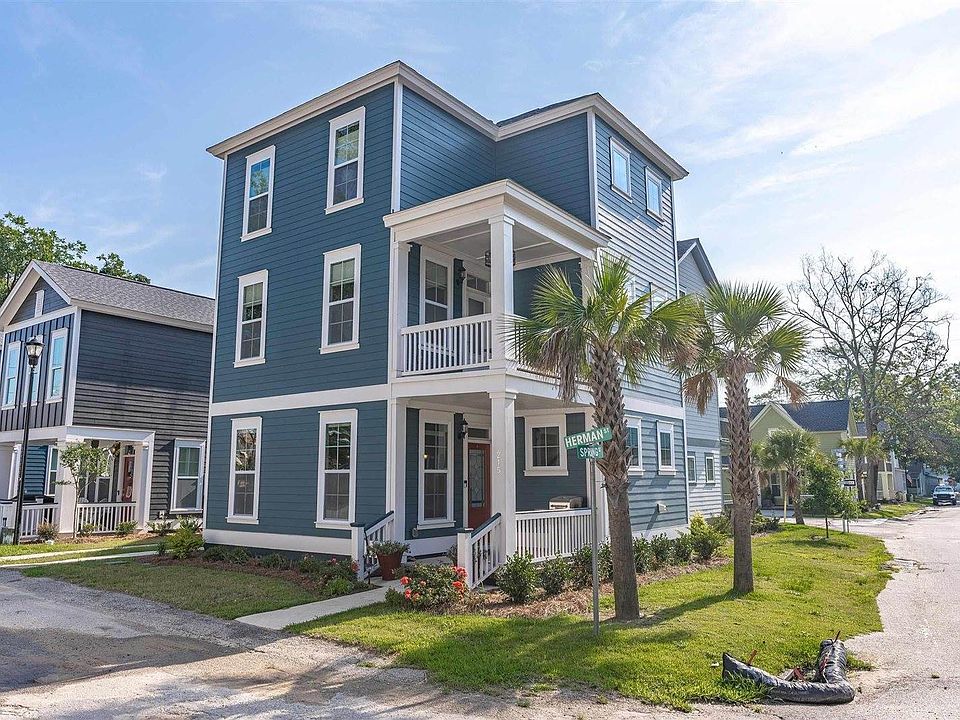 Welcome to your NextHome in St. Ann's Alley! Skip the wait list in this new build community, located in the heart of West Columbia's River District. Walking distance to your favorite WeCo establishments like Cafe Strudel, Savage Craft Brewing, the WeCo Bottle & Biergarten, D's Wings, Black Rooster, and the Cayce-West Columbia Riverwalk! "The Giles" model offers a unique, three level floor plan that you're sure to love. Located on a larger corner lot, you're greeted by the simple yet attractive landscaping and a deep, 8 ft. front porch. Once inside you'll notice the engineered hardwood floors, granite countertops, and an open concept that's perfect for entertaining. Living, cooking, and dining all in one space! Check out the upgraded dishwasher, gas stove, and downstairs powder room! The second floor primary bedroom has an amazing ensuite bathroom with dual sinks and a HUGE walk-in shower. You'll also find a large walk-in closet, laundry, and a private balcony/porch. The third floor contains the remaining two guest bedrooms with a shared hall bathroom. Outside you'll find a two car, private driveway and a cute shed that matches the house. Enjoy NO YARDWORK, as the HOA provides all outside yard maintenance, including twice a year pinestraw installation. Just a stones throw from downtown Columbia, this West Columbia beauty is ready for its newest owners!
