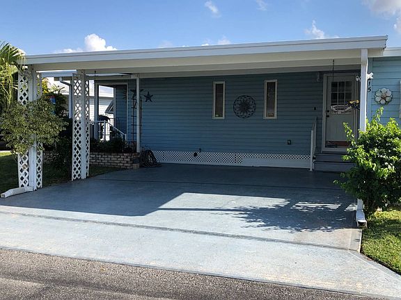 Large corner lot in 55+ Parrish community The Gardens. This 2 bedroom/ 2 bathroom home has an extra large living room, dining room, as well as a family room. This home is 1400 square feet. One lanai is an all season room with acrylic windows and air and heat. Second lanai also has acrylic windows. Tie downs were replaced in 2015. Kitchen has been remodeled. The refrigerator, water heater, and dishwasher are only 5 years old. Washer and dryer were replaced in 2015. The A/C was replaced in 2015. This home comes partially turnkey, All of the furniture in the house stays. Home has a water sprinkler system that gets water from the lake so it is at no cost to the owner. Water softener included. Lot rent is $711 monthly and included high speed internet, 200 cable channels, mowing, trimming, edging, community amenities and clubhouse activities.