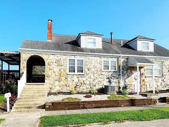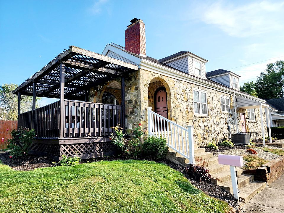 Welcome to 215 Hickory Street! This unique home exudes character and charm with arched doors and entryways, nooks, decorative stone fireplace, captivating stone facade, and original hardwood floors. Inside lower level offers spacious living room with dec stone fireplace open to the formal dining room, kitchen with butcher block countertops/subway tile backsplash/tile floors, separate laundry area, full bath with tile floors, and bedroom. Upstairs consists of 2 large bedrooms with plenty of closet space. Outside offers unique pergola, large yard, and 1 car attached garage. Home has central air/heat and replacement windows.