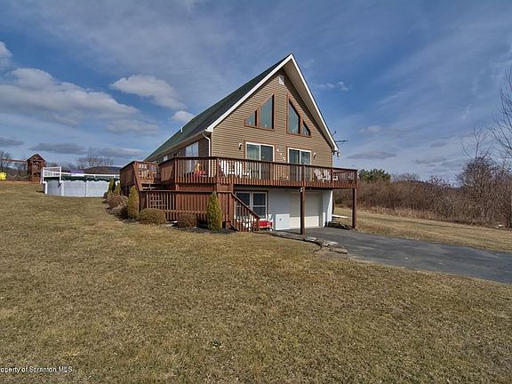 Chalet style with beautiful views. 3 bedrooms with 3 baths and a choice of a second or first floor Master Suites. Open floor plan with vaulted ceilings and sliders to a lovely deck. Fully finished basement including a media room with surround sound system. Above ground pool, lower level laundry room, built in garage. Not to be missed!