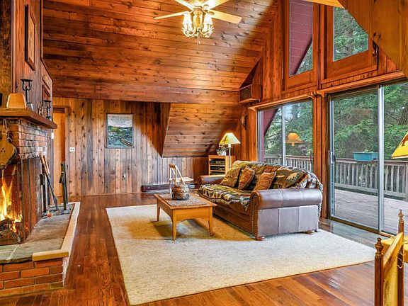 YOUR POCONO DREAM ESCAPE IN A GATED, 4 SEASON COMMUNITY! Just 90 minutes from NYC find this 2 bed (plus bonus sleeping loft) 2 full bath,''cabin-esque'' home guaranteed to bring you magical memories w/family & friends. Situated on almost a half-acre, this corner lot retreat offers the warmth and glow of stunning hardwood floors, cathedral wood ceilings, & a wood burning fireplace, the perfect spot for getting cozy w/ loved ones! 2 MAIN FLOOR BEDROOMS! Master w/attached full updated bathroom! Sliders to back deck - views of nature abound! Cathedral living room opens to galley kitchen & cozy family room! Guest full bath/laundry also main floor. Upstairs LOFT - can be 3rd sleeping area or game room/office space! Price reduced by $14K as house needs new roof, no leaks currently!
