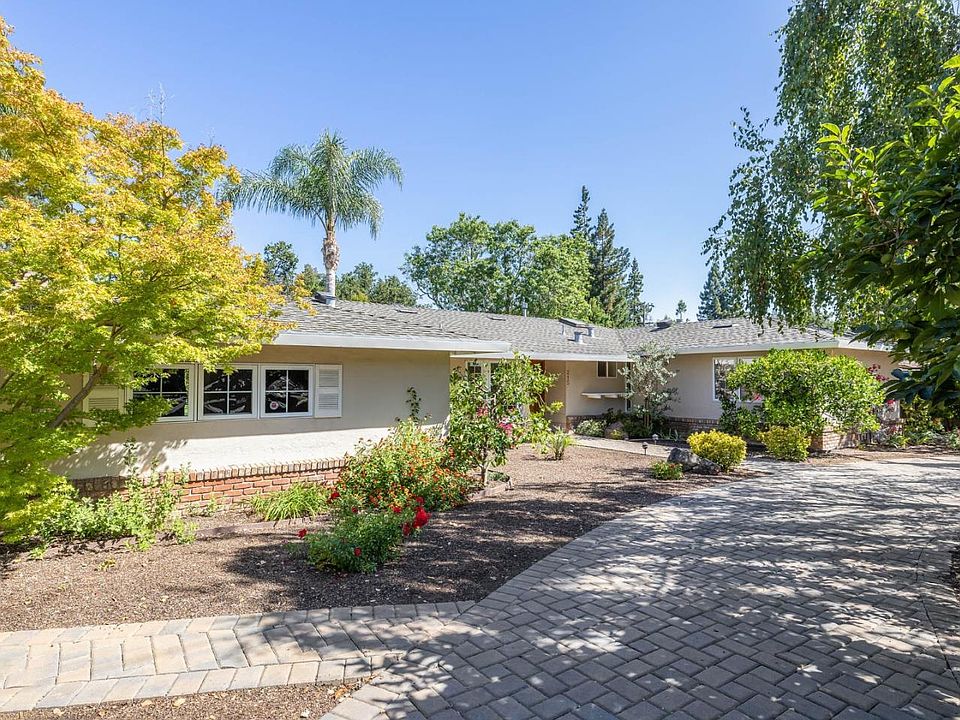Truly lovely and well-appointed home on expansive corner-lot in fabulous downtown Los Altos location. Attractions of this charming one level, cottage-like style home include the petite modernized kitchen with bar seating and breakfast nook, living/dining room combo with fireplace, and a separate family room with its own fireplace. The primary bedroom suite, added in 2003, includes an ensuite bath with spa tub overlooking an open-air atrium/oasis. Three aditional bedrooms with one being an ensuite bedroom/bath. The french-casement style windows, hardwood and tile floors provide a timeless, classic look. Outdoors, the pavered drive, pathways and patio add an elegant touch. The front yard is designed to be eco-friendly, while the side and back yard offer privacy and feature manicured lush landscpaping and mature fruit trees. Dual-pane windows, HVAC, and security system. A short stroll to Hillview Community Center and all offerings downtown Los Altos provides. Excellent Los Altos schools.