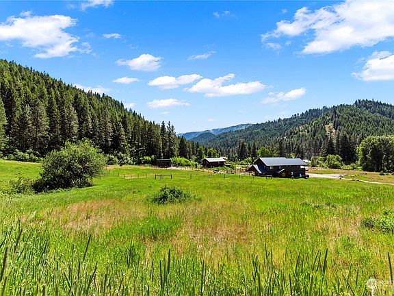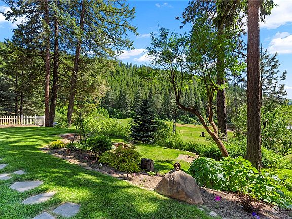 Welcome to this country setting home on a spacious 5 acre parcel! This perfect serene retreat features a beautiful wooden gazebo, a waterfall trickling into the koi pond and multiple garden areas. The upper acreage is a peaceful sitting area with views of the mts. The cozy home has an open floor plan featuring newer flooring, updated bathrooms, newer hot water tank and appliances, updated fixtures, outside painting, a wood burning stove and a perfect view of the mts. The property has a 2 car garage with a loft for storage, sheds, RV hookups, 220 for EV, and extends to a meadow across the street for a possible ADU. This property offers peaceful tranquility while located just minutes from Leavenworth, skiing, and all mountain town activities!