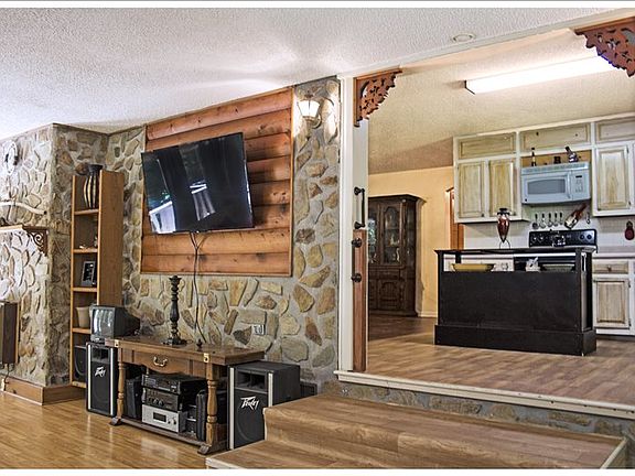 Spacious, and well lit, 215 Holly Branch sits right off a paved country road. Large pantry lies off the bright living room, with a bonus area that could be used for an office or computer space. Kitchen and dining room open to each other,with a large stone fireplace (gas) to keep you warm and cozy. Both bedrooms have an attached bathroom. Tons of closet, storage, and closet space. Great outdoor space, with a wrap around porch, partly covered, that has plenty of room for a big party and is cozy enough for a small get together! Grassy yard in front of house would be great for a garden or a simple play and relax space. Great square footage, location, & house for the price, this will not last!