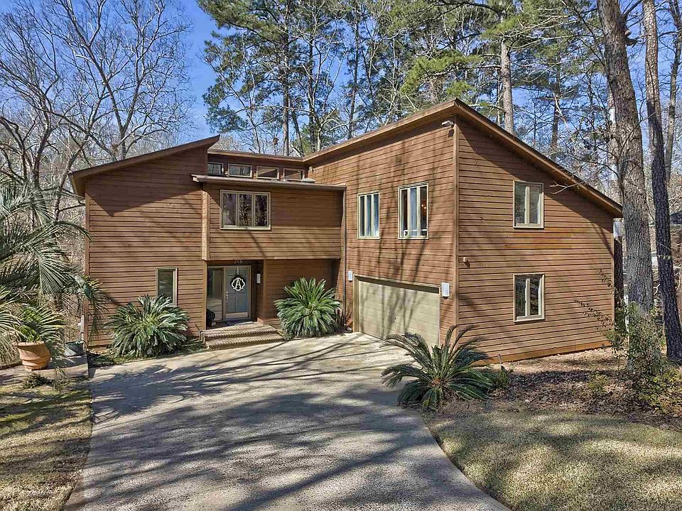 Peaceful & private contemporary mountainlike home tucked away into highly coveted & convenient Quail Hollow. Situated near end of a non through street on a nearly 1 acre (.92) lot full of gorgeous hardwood trees & tranquil views. Courtyard entry for 2 car garage. Inside foyer you'll find large home office ideal for meeting clients or use for studies/playroom. Custom bookcases & desks remain. Giant open concept great room features gorgeous maple hardwood floors & wood plank vaulted ceilings. Forward sun/living room w/oversized windows on 3 sides to take in natural beauty of the outdoors. Library/sitting area provides flexible space for relaxation, entertaining or play. Cozy up around the natural stone, natural gas log fireplace. Flexible entertaining & dining space flows into the updated kitchen w/high end stainless steel finishes including SUB ZERO built in refrigerator, Thermador smooth surface island cooktop, built in wall oven & microwave. Solid surface countertops compliment frosted glass front contemporary maple cabinets w/sleek stainless steel pulls. Back stairwell leads to giant bonus w/storage closet & custom desks for work/study/hobbies. Front stairwell leads to master suite & 3 bedrooms all w/California Closet Company organizers. Designer selected finishes including contemporary light fixtures, paint, carpets w/thick pads & tile. Hall bath has whirlpool soaking tub for guests, master bath w/extra large glass door shower. Furnishings & artwork available for sale.