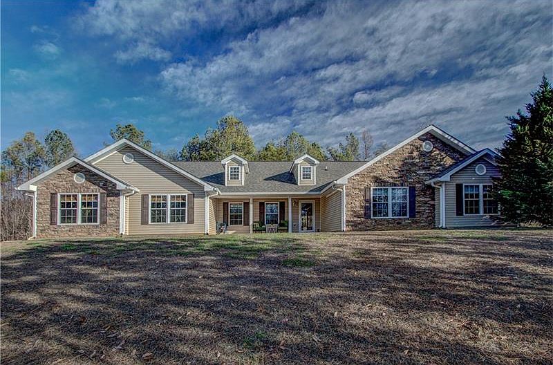 Beautiful Wooded 5 Acre Lot!!! Private living at its Best! This 4 bedroom, 2 1/2 bath home has lots and lots of space to offer! Huge Living Room and Kitchen with granite countertops, lots of cabinet space, double ovens, the cook top has induction cook surface, surround sound system, acid stained floors, carpet in all bedrooms. Tile in the baths! Separate Dining room! Large patio for entertaining and a screened in porch! Huge Metal outbuilding! This One Has It All!