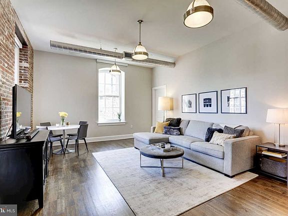 Beautiful & historic Landmark Lofts! Open floor plan, hardwood floors, exposed brick, &10 ft ceiling. Gourmet kitchen boasts Wolf range, Sub Zero fridge, & quartz countertops. Master BR w/ walk-in closet. Unit has huge private balcony! Amazing amenities include rooftop pool, gym, party room, rooftop deck with sweeping views, & 24 hr concierge! Easy walk to Union Station & H St. Plus parking!!