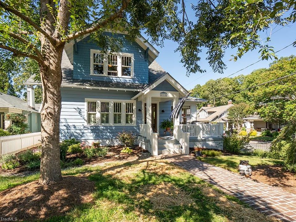 Now is your opportunity to own a well maintained craftsman in Fisher Park on a charming corner lot! Welcoming front porch and side sunroom surrounded by windows. Hardwood flooring throughout. Main level den could be a 4th bedroom. Chefs Kitchen~space to hold cooking classes and has an additional office area with shelves and built-ins. Fantastic outdoor space with pergola and perennials throughout the yard. Garage space for storage with attached potting area. Close proximity to the park, Corner Slice, Fishers, Deep Roots, and Downtown Greenway.