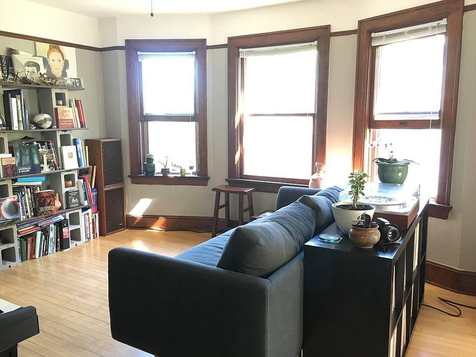 Large, sunny 2 Bedroom, 1 bathroom apartment, about 950 square feet. The apartment is on the second floor of an old (1914) house with character in the Atwood neighborhood on the east side of Madison, near the Barrymore. Beautiful maple hardwoods in living room, dining room, two bedrooms and kitchen. Wood trim. Bay windows. Large cedar deck in back with morning sun (refinished since the photo was taken). More photos to come. Big bright kitchen with new cherry cabinets and Corian countertops, and newer kitchen appliances including glass top electric stove (2018). Free washer /dryer, storage area in basement. Laundry line. Many energy efficiency upgrades. New high efficiency furnace and water heater. Ceiling fan in dining room. Solar photovoltaic panels on the roof. Solar heated hot water feeds the gas water heater. Rent is $1350, which includes gas, electric, and water utilities. Quiet neighbors and a GREAT WALKABLE NEIGHBORHOOD! Kids and good pets welcome. Extra pet deposit required, refundable if no damage done. Large yard, great spot for someone interested in gardening. Plenty of garden space, including raised bed gardens. Snow shoveling and lawn mowing required. Duties are split with other tenants in the building. On street parking only. Sorry, no smoking. Available August 1, or possibly sooner. Showing times by appointment only. First showings will be Sunday May 27 Feel free to contact us if we can answer any questions. If you value sustainability, this is an apartment for you! We are co-founders of the green apartment network, an association for green-minded property owners and green-minded tenants. We promote sustainable apartment living. We encourage gardening, value energy efficiency, use many recycled and reused materials, and we support local businesses. We look for tenants with similar values. Utilities included: gas, electric, water