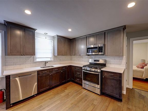 Prepare to be impressed when you enter this superbly presented ranch home in Providence's charming Elmhurst neighborhood. The main level offers a living room flooded with afternoon light, three nice size bedrooms with ample closet space and hardwood floors, a tastefully updated bath and a show stopping, newly renovated kitchen with stainless steel appliances, a gas range, quartz countertops, subway tile backsplash and abundant cabinetry. Need a bit more space? Retreat down to the finished lower level where you will find a freshly painted bonus room, full bath, laundry room, and plenty of extra storage. Other highlights include newly updated mechanicals, replacement windows, and a sweetly landscaped and fenced backyard with a deck for friendly gatherings.
