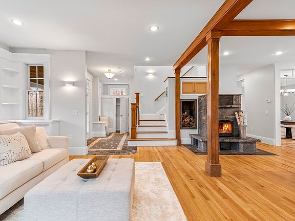 Escape to serene privacy! This modern classic on 6.4 wooded acres in Smithfield offers unmatched elegance and comfort. Energy-Star certified, this home boasts year-round energy savings. Step into a sun-drenched 3-season room, perfect for morning tranquility. The custom kitchen and breakfast nook are ideal for gatherings. A grand master suite features a private balcony overlooking the peaceful estate. Enjoy radiant warmth from the Tulikivi fireplace/wood stove. Vaulted ceilings, hardwood floors, and built-ins showcase timeless craftsmanship. Relax on the wrap-around porch, perfect for summer evenings. Potential abounds: create a family compound, develop extra lots, or establish an in-law suite/Airbnb. A dry, heated basement provides ample workspace with 9' ceilings! This home offers a lifestyle of privacy and potential. Experience the magic today!