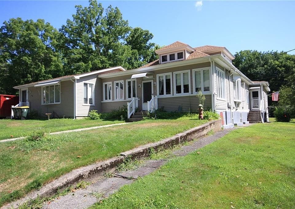 Huge inlaw type addition on this 4 bed total, 2 bath house sitting on 1.62 acres. Two living rooms, two kitchens, 3 season porch. Plenty of parking in the driveway. Two car detached garage and shed. Roof 2013, vinyl siding 2011, newer boiler, connected to sewer, generator hookup, and two separate electrical panels. There's a LOT of house here for the price! Estate Sale, no probate approval required.