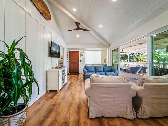 Completely renovated in 2022, this beautiful 1948 beach cottage is situated on a large lot in the highly desirable area of Lanikai. Perfectly located with the beach, Pillbox hike, Mid-Pacific Country Club, Lanikai Canoe Club, and local park/playground all within one block. Home has 3 bedrooms, 2 bathrooms, kitchen, living room, a laundry room, and outdoor shower. 3rd bedroom is able to flex as another living space. Ranked as the top charter elementary school in HI, Ka'ohao Elementary school is just a short walk with the kids. Right up the street is Mid-Pacific Country Club with a renowned golf course, pool, and clubhouse. Walk straight down the street one block and you are at the entrance to Lanikai Beach, ranked as one of the best beaches in the world. House is turn key and fully furnished, A/C throughout the home, with a king bed in the primary suite, and a queen bed in each of the other bedrooms. Two large desks allow for easy teleworking capability. A laundry room with washer, dryer, and laundry sink overlook the back-covered lanai which is perfect for a game room, lounge area, or workspace. Large sliding glass doors open up to the wrap-around covered front lanai(additional 600sqft) with a dining table and lounge area providing additional indoor-outdoor living space. Home also includes a large front yard with a lava rock wall, gazebo, and lawn. The backyard contains another large deck and is freshly landscaped with a variety of native plants and palm trees creating a tropical and peaceful atmosphere. Come enjoy the Lanikai Beach living for a few months or long-term. Please message with any questions. Showings available this Friday 20 June. Available mid July. Flexible lease options 6-12 months. Owner pays for water, trash, high-speed internet, and bi-weekly landscaping services. Tenant pays for electricity. Available mid-July