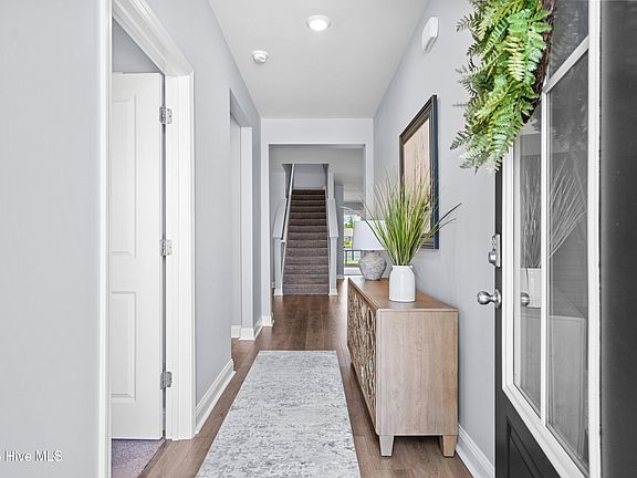This home is a must-see! Featuring a spacious 3-car garage and stylish laminate wood flooring throughout the main living areas, this home boasts a stunning open-concept design. The gourmet kitchen is a chef's dream, complete with granite countertops, stainless steel appliances including a gas range, and a generous walk-in pantry. Just off the garage entry, you'll find a convenient mudroom with built-in cubbies and coat hooks. The private master suite is tucked away at the rear of the home and offers a tray ceiling, abundant natural light, two walk-in closets, and a luxurious en-suite bath with dual vanities and a large tiled shower. Step outside through sliding glass doors to enjoy the expansive 18' x 11' covered rear porch—perfect for relaxing or entertaining. The second floor, offers an additional bedroom, full bath, and a versatile bonus room. Located in the natural gas community of Heather Glen, residents have access to an impressive list of amenities, including a large clubhouse with wide verandas, a resort-style pool, climate-controlled fitness center, fenced dog park, playground, and even a blueberry garden. Book a private showing today!