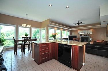 Spacious contemporary on a private cul de sac, open floor plan, fully equipped eat in kitchen, granite countertops, master bath, updated hardwood flooring and carpets, vaulted ceilings, double deck, with hot tub, spectacular wooded view. Newly remodeled ultra-contemporary luxury master bath. New central air/furnace. New tankless hot water heater. New siding.