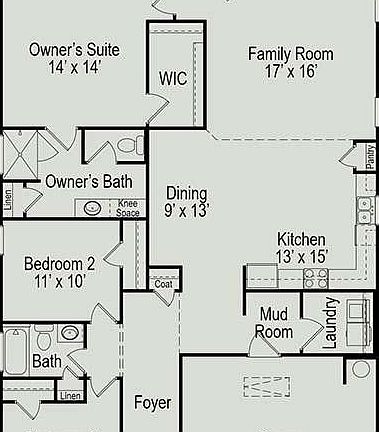The Pearson greets you with a welcoming front porch and is a ranch home that is thoughtfully laid out to maximize each space to the fullest.. A dining area, opens to surprisingly large kitchen. A family room leads to the back yard and reveals a private entry to the Owner's Suite with walk in closet and Large Tiled shower in bath. Mud room and laundry just off the garage entry to maximize organization. Granite Counter tops with modern 42" Stone Grey cabinets, rectangular under mount bathroom sinks. Call today and ask about our current incentive.