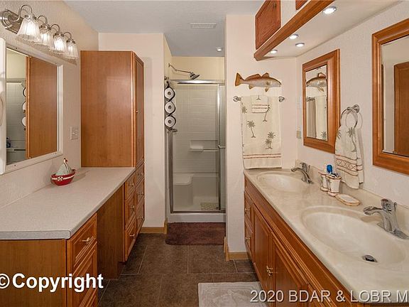 Two-car detached garage has large workshop on lower level with heating and air. Open floor plan features a master on each level and sun-room on each level. Family room has a kitchen for entertaining. Some furniture stays. Seller offering a one year Homeowner's Warranty. Boat slip is #5 (4th from the right).