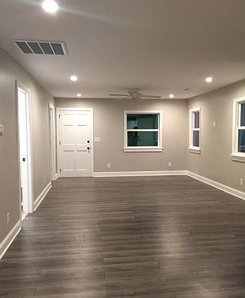 New from studs in per seller/gutted w new sheetrock, paint, flooring, cabinets, laminate floors,(tile in baths),windows, heat pump, , gutters, well pump, & insulation, Kitchen & baths updated. Owner provide one year roof warranty. granite tops in kit, quartz in bath. walk in closet, storm doors, cab in large mud/laundry room. 2 carports (one is cracked tile for covered patio as desired.)W full price offer owners will put privacy fence on side adjoining neighbor if desires. wooded back/private