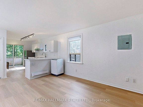 This sun drenched Beach unit feels like an oasis perched up in the trees! Second floor unit updated throughout including new flooring, a bright living space (lots of windows throughout and a gorgeous skylight), modern open concept kitchen with stone countertops, updated bathroom, and a bedroom with vaulted ceilings, ceiling fan and a closet. Open concept living has great flow with direct walk out to your south facing private back deck with lots of folliage and privacy - perfect for entertaining, BBQing & lounging. Complete with brand new ductless Air Conditioning & heat pump allow you to be in control of your own units heating/cooling. Private brand new Washer/Dryer in the unit for convenience. Located just 900 meters from the Beach this unit will allow you to take advantage of all the neighbourhoods amenities - tennis courts, outdoor olympic sized pools, bike paths, water sports, volleyball and of course, the beach! Groceries, Wine Rack and Starbucks at the bottom of the street, as well as easy access to the TTC (Woobine subway is at the top of the street, 24 hr street car at the bottom of the street, and bus stops right outside the property).