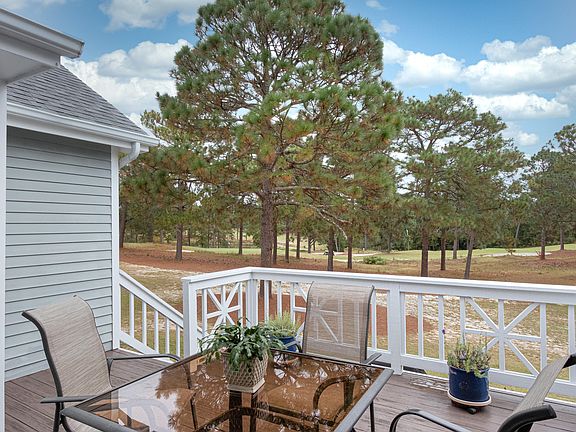 Beautiful home at Longleaf Country Club with fantastic golf and pond views. Private deck for coffee or cocktails overlooking course. Home is light and bright with high ceilings and lots of windows. Move right in! Seller added many upgrades including new floors, granite in kitchen, appliances and shower in Master bath. Kitchen has breakfast area for casual dining. Spacious great room with additional dining area and two-story ceilings in living area with fireplace. Master bedroom and additional bedroom on 1st level, plus third bedroom and additional loft area upstairs. Ample storage provided by approximately 130 square feet of heated, walk-in storage on second floor. Perfectly located between Pinehurst and Southern Pines. Located near college, shopping, schools and easy drive to Fort Bragg!
