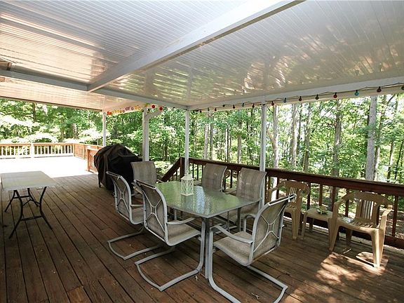 Perfectly nestled in the woods on the lake in a private setting. This furnished lake home offers a spacious floor plan plus exceptional space for outdoor relaxation and entertaining. The open floor plan provides the large living room with fireplace, raised formal dining room, lakeside breakfast nook and kitchen all open within the central part of the home. The kitchen has ample custom cabinetry with pullouts and double sided doors plus awesome countertop space. Access the huge lakeside deck direct from the living room. The laundry room includes a stackable washer dryer and lots of storage. Your lakeside master suite is oversized with a door to the lakeside covered porch. The master bath has a large jetted tub, walk in shower and double vanity. A few cosmetic upgrades here will make this master bath your fave spot in the home! The split floor plan provides a hall entry on the opposite side of the home for the second and third bedrooms plus a great second bathroom with linen closet, large vanity and shower tub combo. Beautiful, custom brick flooring, hardwood flooring and carpet on the main level. The lower level includes an oversized two car garage, a storage room lined with shelves, a playroom, a huge workshop and a third full bathroom with walk in shower. From the workshop you walk out onto the enormous lower covered patio. Even with so much storage within, there is also an outbuilding that remains. And park your rv or boat under the tall detached carport. The seller has the roof professionally treated to extend the life expectancy. With just a short, gentle walk to the lake you find 140 feet or lake frontage. Zoned yellow- the Corps of Engineers doesn't allow a boat dock here but the gentle shoreline and deep water is a fantastic spot for temporary beaching of a boat, kayaking, canoeing, fishing and of course swimming. Centrally located within less than five minutes from the boat landing at Weldon Island or Broyles Landing Ramp; both parks provide boat ramps and picnic areas and Broyles also has a public beach and playground. This is a great family home with so much potential and space. Quality District 4 Schools System- Townville, Riverside and Pendleton High.