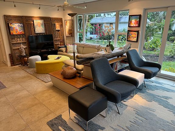 Enjoy this richly furnished furnished, modern 2 bedroom 2 bath villa cottage while the owner is travelling. Only two miles to Old Naples and the beach in a quiet leafy neighborhood. Fabulous private art collection fills the home. Light and bright with south and west garden exposures. Gourmet open kitchen and great room. Oversized one car garage. Rare opporunity to live in a very special private home.