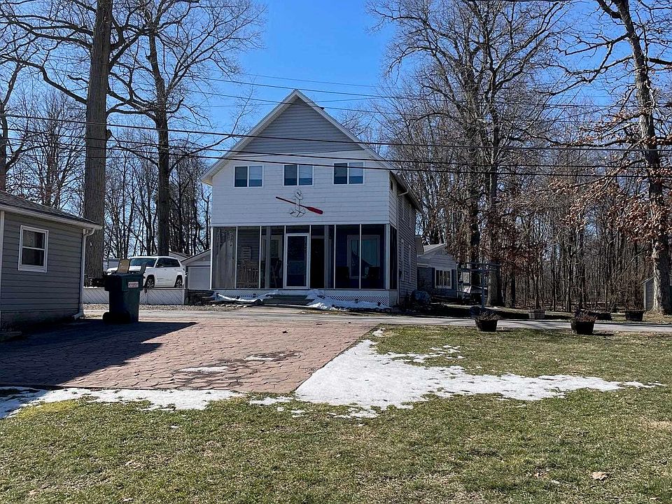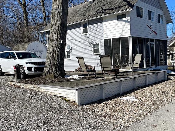 Check this out! An updated, efficient, gorgeous, and impeccably maintained turn-key lake home with deeded access and docking rights right across the road on Lake George! And it comes FULLY FURNISHED! That's right, all the furniture, bedding, appliances, wall art, window treatments, and dock stay with the house! You just bring your boat and a bag of groceries and you're good to go! The third bedroom was created by enclosing and finishing the upstairs porch that runs the entire width of the house so ALL the grandkids have a place to sleep! The screened-in front porch on the main level also runs the whole width of the house and offers an awesome view of the lake, the patio is huge and perfect for the grill and entertaining! There's plenty of parking and a shed for water toys! The title work has been started by Fidelity in Angola.
