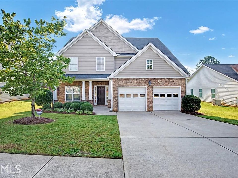 You'll instantly fall in love with this beautiful Heron Bay home. This gorgeous two-story brick front home offers over 2,133 square feet, 4 bedrooms, 3 full baths with 1 of the full baths located on the main level. COME INSIDE! The inviting main entrance offers natural light with a formal dining room for entertaining family & friends. The kitchen has brand new stainless steel appliances (never used) and offers plenty of cabinet space. The living room has vaulted ceilings, a cozy gas fireplace and large cathedral style windows with natural light. New carpet throughout the downstairs and running up the steps going to the 2nd floor. New paint throughout. The main level bedroom could be used as a guest bedroom, in-law suite, office space, children's playroom, endless possibilities. The custom blinds are cut to fit the specific size of this home. The staircase leads to an open balcony that overlooks the downstairs area. Owner's suite has vaulted ceilings, custom fan and great lighting located on the 2nd floor. The owner's suite bath offers a stand up shower, garden tub and large walk-in closet. Two secondary bedrooms are located on the 2nd floor as well with large closets for all of your storage needs. Laundry room located on the 2nd floor next to the owner's suite bedroom. ENJOY your 2 car garage with new upgraded garage door openers by "Lift Master" with built-in Wi-Fi. Located in the sought after Heron Bay Golf and Country Club, beautifully landscaped with winding sidewalks and all of the amenities you could ever need! This community features an 18-hole golf course, driving range, Jr. Olympic-sized swimming pool, kiddie wade pool, 2 water slides, fitness center, playgrounds and nature walking trails. Heron Bay Community also offers a rentable clubhouse perfect for birthday parties, graduations and showers. This well-maintained community & home checks all the boxes!