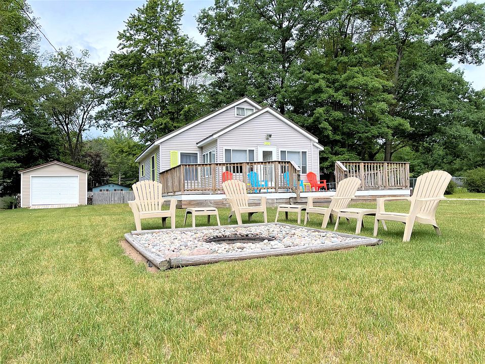 This beauty welcomes you to be warm & fuzzy when you open this door to 'come on in'. Great primary or vacation home. No updating or cleaning in this meticulously kept home. A bedroom down & large loft with easily room for 2 beds upstairs. You have a boat launch just down the road . Large garage that was built for a car if needed to park your car or boat in. Also, a nicely built shed for STUFF!