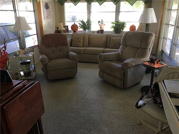 Adorable winter retreat!! Immaculate condition. Many updates to include a/c & heat, 2 years. Back deck and open patio, no back neighbors. New electric box in shed area. Open front porch with mature landscaping. Everything you need to enjoy our Florida climate. Very active +55 community. Monthly maint. fee 147.00 to include water, sewer, trash and lawn care. Hurry!! This gem won't last!!