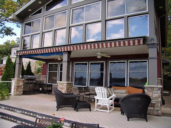 Beautiful home on Lake James with 41 +/- feet of frontage and a great beach. This home features a gorgeous main floor with Mission-style decor, hardwood flooring and a lovely open floor plan. It also includes a beautiful kitchen with quality appliances, four bedrooms, a loft area with an enclosed deck on the second floor, and a private area off the master bedroom where you can read the newspaper and enjoy your morning coffee. You're also sure to enjoy a spacious, maintenance-free deck with an awning .. the perfect place to enjoy breathtaking sunsets. Other features include a 2-car, insulated garage with a workshop and stove heater, a paver driveway and walkway, a spacious area by the water for sunbathing, a grassy area for games, outside showers, and lower-level storage for water toys