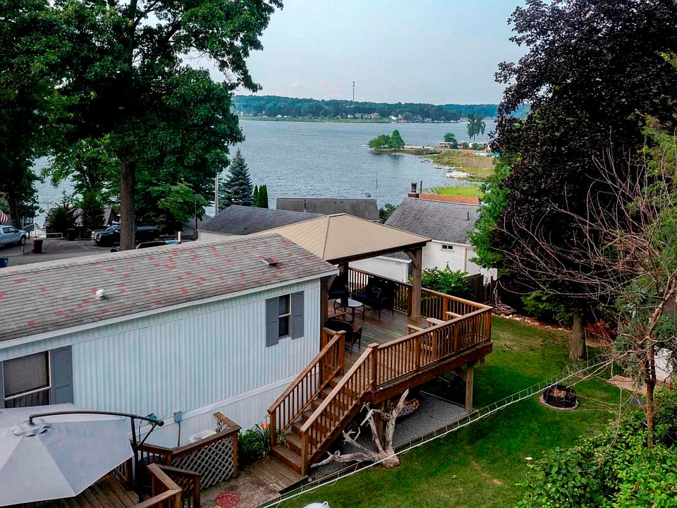 Oh My Goodness!! Lake Views, Lake Views & Boat Slip. Here is a great inexpensive way to access the Lake James Chain. The outdoor living at this home is simply amazing! A spacious covered deck,(16 x 20) perfect for entertaining & has stellar views of Jimmerson Lake, storage under the deck - perfect for your golf cart, and a shed for overflow storage. Inside you will find an airy open concept home, great for the whole family! There are so many updates on the inside, all updates in associated documents. The kitchen has plenty of built-ins for amazing storage, a gas stainless range with double oven and dishwasher, a newer refrigerator, updated counter tops, painted cabinetry including all new lower cabinets, subway tile vinyl backsplash, and new flooring in the kitchen. There are 4 bedrooms & 2 full baths, room for family and friends! The guest bath has new flooring, vanity, and toilet. The master bedroom has a surprising lake view and its own bath. Buena Vista is a golf cart friendly neighborhood which makes it easy to navigate to the updated neighborhood park, the amazing association beach area, and the community docks on Lane 370. This property includes a slip at the community docks with your paid annual $350.00 per year fee along with the association dues of $150.00 per year. There is something for the whole family to enjoy on the Lake James Chain.