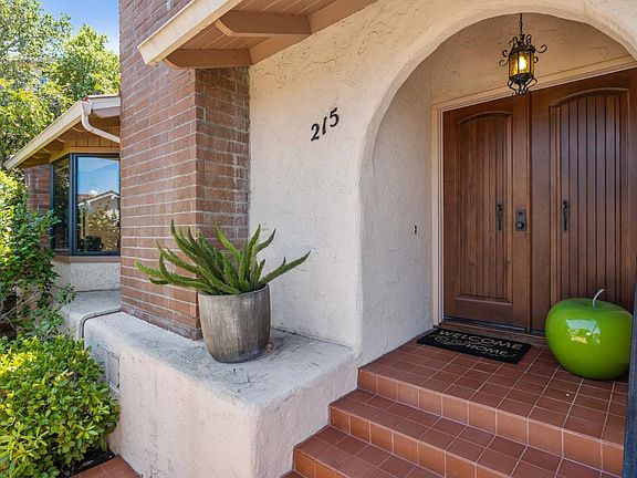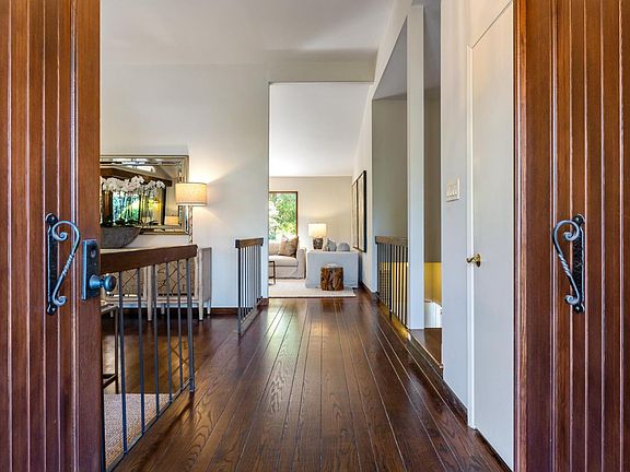 In the hills of San Carlos one block from Eaton Park Trailhead is a charming home with classic Spanish flair. Double doors open to the romantic interior with a central foyer showcasing dark oak flooring set off by sandy white walls, majestic ceilings and natural light dancing through transom windows, skylights and glass doors. Elegant iron railings and elevations define the living room with fireplace and adjoining sunroom. A formal dining room and family room connect with the granite-finished kitchen designed for indoor-outdoor entertaining. Carpeted bedrooms, including a suite, and tiled bathrooms are on the upper level where views to the bay and beyond are enjoyed. The basement provides garage and outdoor access, a laundry room, and spa with original sauna, hot tub and shower. The back yard with patio and covered deck is a gardeners delight with a hydrangea garden, grove of citrus trees, colorful flowers and vines, and perimeter plantings creating a lush, private sanctum.