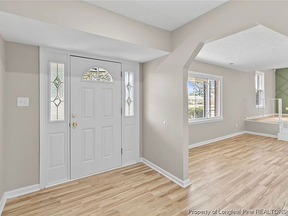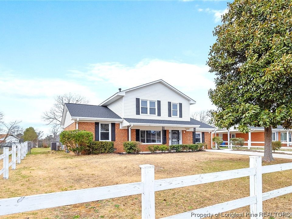 Gorgeous updated 4beds 2 1/2 baths home! Wide foyer will welcome you. The beautiful accent wall in the dining room will take your breath away. You can oversee this wide formal living room. The kitchen has granite countertops, stainless steel appliances, and even a coffee bar! This beauty has a large family room with a fireplace and ceiling fan. There is a bedroom downstairs that can be used as a guest/ in-law room. A heated big sunroom will lead you to a covered patio (included in the square footage of the house). the large shed in the backyard can be used as a workshop. It is on a concrete slab, and it has electricity. All the other bedrooms are upstairs. They have new carpet and ceiling fans. Beautiful lighting and plumbing fixtures. This home has plenty of parking space with 2 driveways! At only minutes from Fort Liberty!