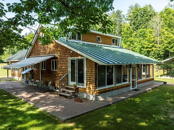 A gem of a home and a gardener's delight await you at this splendid property located in Lower Bartonsville. This contemporary, 3-bedroom and 2.5 bath home sits on 15.2 acres of combined expansive open fields, wooded land with trails and landscaped grounds. Enter through a bright sunroom with custom designed woodwork. The home’s exposed beams and tasteful wood accents add character and warmth throughout. The kitchen features custom oak cabinets and new quartz countertops. The dining area flows to the main living space. The first-floor primary bedroom suite is graced with a cathedral ceiling and plenty of windows. It offers radiant floor heat and a walk-in closet. Step out onto the post-and-beam covered stone patio overlooking the field to enjoy your morning coffee. The adjoining bath has a large walk-in shower and radiant-heat flooring. The second first-floor bedroom is next to the newly renovated bathroom featuring a soaking tub with shower and new engineered hard-wood flooring. The second-floor offers a loft office space with built-in shelves and a third bedroom with an east-facing balcony, plus a half-bath. The home is impeccably well cared for from its standing seam roof down to its dry, clean basement, features two heating systems and new 4-bedroom septic system [2008]. The two-story barn offers a workshop, storage and three carports. Established garden beds and a high-tunnel greenhouse make this an ideal place for gardening or small-scale farming. Delayed showings 6/22.