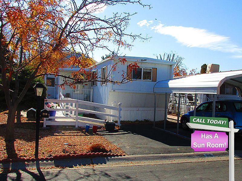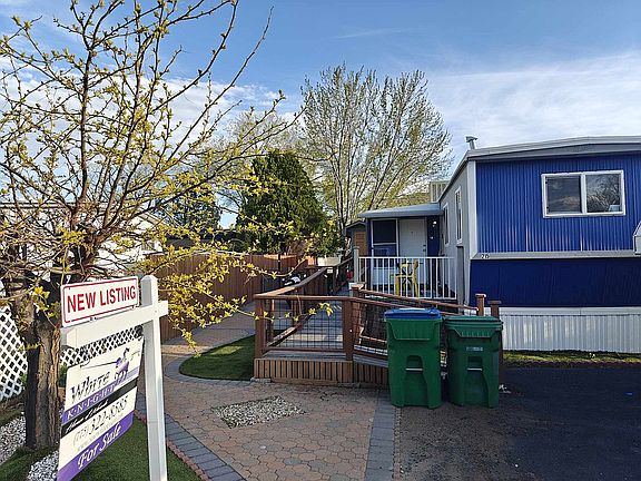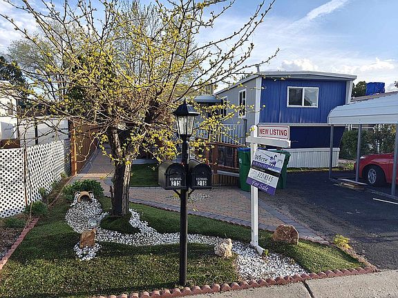 2 bedroom 1 bathroom manufactured home on large lot with bonus room! Fenced yard, patio deck near front door. Built in 1969 with gas appliances included. Being sold through White Knight in Reno Nevada with a $1000 HOA/lot rent per month which includes water, sewer, and trash fees. 2 off street covered parking and 1 off street uncovered parking spots. Dm with questions or reach out through White Knight .