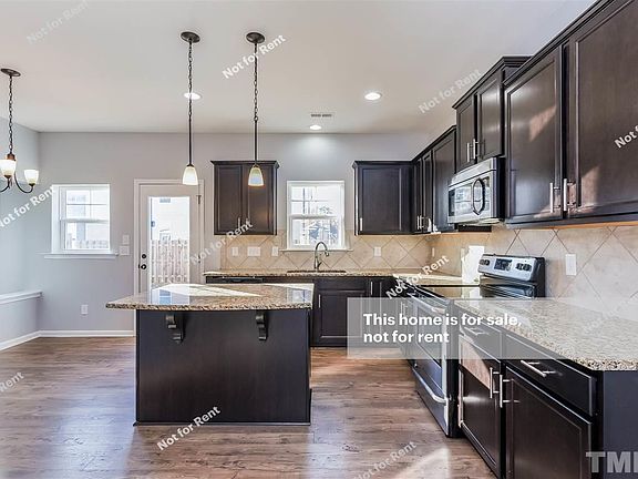 This Garner two-story offers a fireplace, granite kitchen countertops, a loft, and a two-car garage.