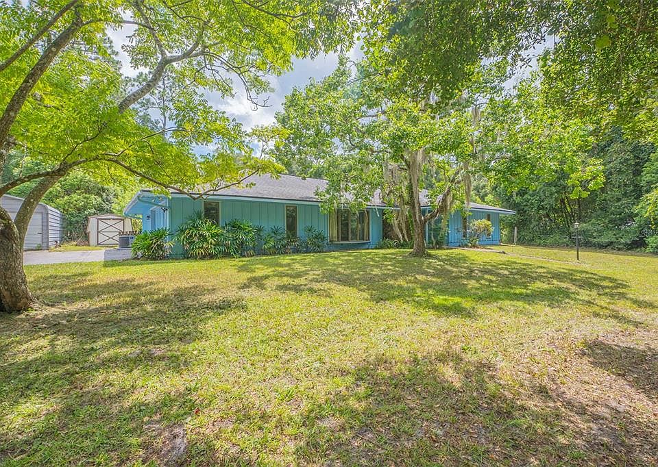 Welcome to your dream retreat! This stunning 4-bedroom, 3-bathroom home, boasting 2,428 sq ft of pure comfort, is nestled on a serene 1.63-acre lot where nature and luxury blend seamlessly. In the front of the lot there is a small artisan spring fed pond, which attracts a variety of Florida aviary wildlife. From the moment you step inside, you’ll be captivated by the inviting charm of the spacious living room, complete with a cozy wood-burning stone fireplace and warm cedar accent walls. Imagine relaxing in this beautiful space, with two sets of French doors leading you out to your private oasis. Step outside to discover the perfect spot for entertaining or unwinding—your very own covered patio, featuring a large hot tub and a screen-enclosed inground pool. With a new pool pump installed in 2022, and a new screen cage replaced in November of 2023, this area is ready for endless summer fun! The master suite offers its own slice of paradise, with French doors opening directly to the patio, providing easy access to the hot tub and pool. This home is full of thoughtful touches, including a 3rd bedroom located on a separate side of the house with its own bathroom and entrance—ideal for an in-law suite or guest room. The kitchen is a chef’s delight, featuring a brand -new stainless -steel refrigerator and updated stainless steel dishwasher and stove, a wet bar area perfect for entertaining, and plenty of space to cook up your favorite meals. The exterior of the home has been freshly painted, and with a roof replaced in 2018, a water heater in 2021, both electrical panels updated in August 2024, and one of the two HVAC units replaced in March 2024, this home is move-in ready. Need extra space? A separate steel building with electricity and two rooms offers endless possibilities—whether it’s a workshop, home office, or studio, you decide! The property also features a convenient laundry room with an oversized sink, fold-out ironing board, and outdoor access, a 2-car garage, and dual septic tanks. Surrounded by beautiful wildlife and offering plenty of room to breathe, this home is the perfect canvas for your personal touch. Whether you want to update a few areas or simply enjoy the peaceful setting, this property is ready to welcome you home!