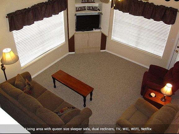 Luxury condo offers that offers plenty of room for the whole family! Open floor plan with almost 1500sq.ft. of pampered living. From the new top of the line mattresses to the relaxing recliners you will be surrounded with the comforts of home enabling you to enjoy your time in Branson. The living area includes a queen sleeper sofa and two recliners and of course an overhead fan. The 32'' flat screen TV is just what is needed to comfortably view your favorite program. Access to the sunroom is also available from this area. Fully equipped Kitchen with all appliances. The Dining Room offers seating for 6 and an overhead fan to keep you comfortable while enjoying your meal.Fully Furnished and recently updated this condo is a must see and STEAL at this price and will not be on the market lon