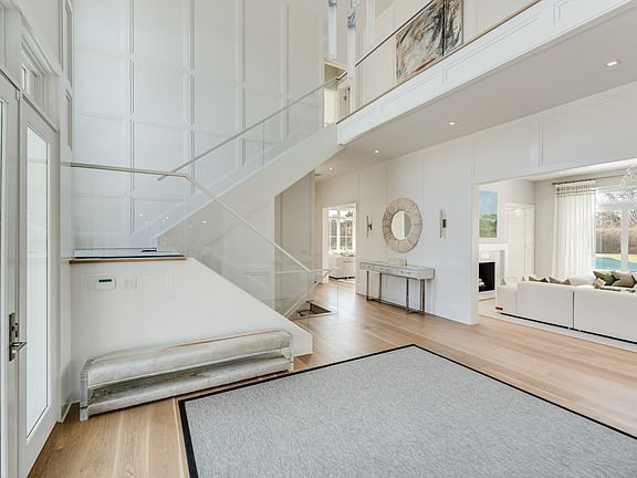 South of the highway in Water Mill discover this newly completed and furnished 8,880+/- sq. ft. (inclusive of lower level) traditional on 1.38+/- acres built by Farrell. Enter the double height foyer to light-filled open living spaces featuring glass railings and including a great room, an eat-in kitchen with island, porcelain countertops and backsplashes, and high end stainless steel appliances and breakfast area, with glass doors opening to sandblasted blue marble patios and covered porch areas. The living room with fireplace also opens to the patio, as does the great room, which has a fireplace as well. There is also a dining room with wine closet. The home's eight bedrooms, seven full and three half baths include two master suites, with one beautiful master on the first floor. Upstairs is a second master suite, which has radiant heated flooring in the bath and which shares a generous terrace with one of four additional en-suite bedrooms also on this level. In the finished lower level are two additional bedrooms, a full bath, large recreational area and a gym, plus an optional theater. An elevator serves all three levels. Outdoors relax or entertain on the patio/porch, enjoy the heated gunite pool and spa, and sunken tennis court, all set in the spacious and beautifully landscaped grounds with sandblasted blue marble walkways. Additional amenities include a laundry and attached two-car garage with radiant heated floor. Conveniently located minutes to ocean beaches, Bridgehampton and Southampton.