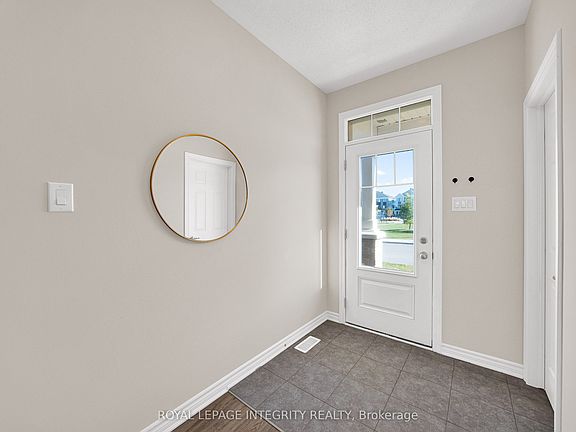 Welcome to the stunning Majestic End model by Mattamy Homes, ideally located in the heart of Half Moon Bay, one of Ottawa's most sought-after family communities. This end-unit townhome combines space, comfort, and modern design, featuring a layout that maximizes natural light and functionality.The main floor showcases an open-concept design with 9-foot ceilings, a foyer closet, convenient stop/drop built-in shelving, and a powder room adjacent to the inside entry. The kitchen offers abundant cabinet space, a breakfast bar, and an eat-in area, while the spacious living and dining rooms provide the perfect setting for relaxation or entertaining guests. Upstairs, the primary bedroom features a walk-in closet and a -4 piece ensuite, while the two additional bedrooms are generously sized and share a full bath and laundry room on the same floor.What truly sets this home apart is its location: directly across from a beautiful park, providing serene views, and just a 5-minute drive to the soon-to-open Food Basics, Minto Recreation Complex, and Half Moon Bay Public School putting everything your family needs within easy reach. With its thoughtful layout, high-quality finishes, and access to excellent community amenities, 215 Merak Way is more than just a home its a lifestyle, perfect for growing families or anyone seeking a vibrant, welcoming neighborhood.