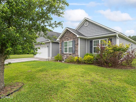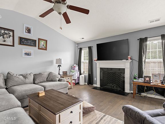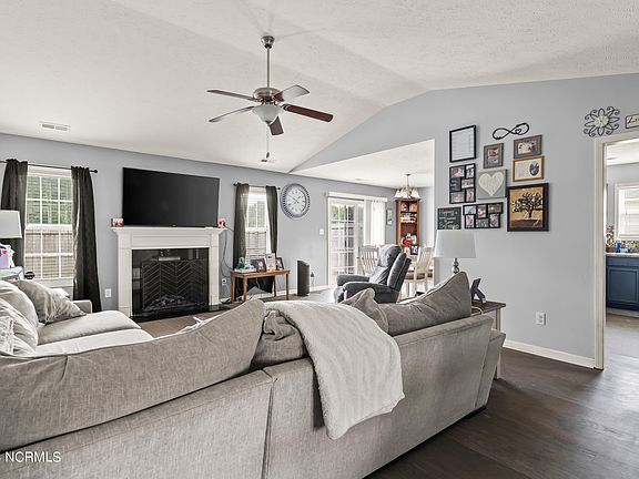 Welcome to Carolina Plantations! This beautiful 3-bedroom, 2-bathroom home boasts a 2-car garage and many features that are sure to captivate you. As you step inside, you'll immediately be greeted by the vaulted ceiling in the spacious living room with a fireplace.
