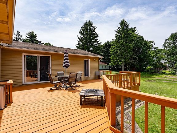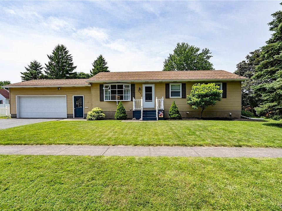 ADORABLE RANCH HOME!!! This great home is ready and waiting for you! One level living at its best. New flooring throughout the front living room and three bedrooms. Updated first floor full bath. The kitchen is fully equipped with lots of storage, counter space, and a breakfast bar. Formal dining room with ceramic tile. Awesome extra living room with vaulted ceilings and a cozy natural gas fireplace. Sliding doors lead to the huge back deck that has been freshly sealed and painted. Huge yard with room to roam! The front porch has also been repainted…curb appeal for days!!! Located just on the edge of Watertown and a short commute to Fort Drum, this one is turn key. Call or text today for a showing!!!