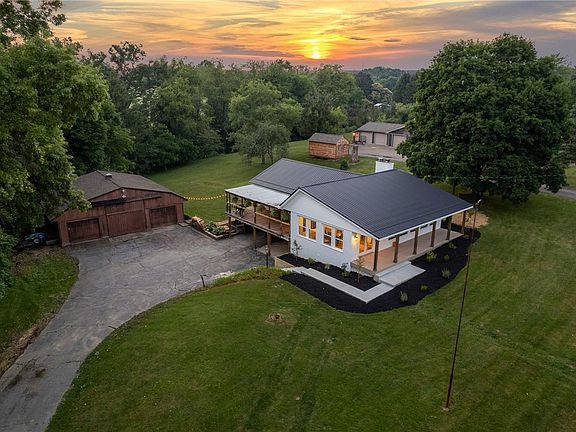 Welcome to 215 Moody Rd! This stunning 3-bedroom, 3-bathroom home sits on an acre and offers plenty to enjoy. Inside, vaulted ceilings in the formal dining area lead to a spacious side porch—perfect for sunsets or entertaining. The open-concept kitchen, ideal for the cook in the family, boasts ample storage and counter space. A bright bonus flex space offers versatility as an extra bedroom, play area, or home office. Rounding out the first floor is an additional bathroom, and two well-sized bedrooms, including a large primary with en-suite bathroom and walk-in closet. Downstairs, you'll find loads of additional living space, including a finished game room, wet bar, an additional bedroom, and full bathroom. The property also includes an integral 2 car garage, large driveway, and huge barn teeming with possibilities. With too many updates to list, a great location, and the definition of move-in-ready you, don't miss the opportunity to make this home yours!