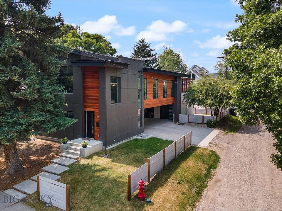 One of the neatest modern hidden gems in the NE east corridor of Bozeman, MT. Tucked in the trees and rising high is this custom designed home featuring 3 bedrooms and 2.5 bathrooms with an upper deck off the living room that has side-enclosed wood shutter blinds and a swimming pool. Yes, a swimming pool! There is new wood plank decking and an outdoor built-in sound system. This space feels very tranquil and serene yet can transform into fantastic space for outdoor gatherings. In addition, there is a shaded North facing courtyard space to the side of the offer which offers additional private outdoor low maintenance living space. The main living space of the home feels lofty and bright with large windows and high wood clad ceilings and has lovely kitchen with solid surface countertops, gas range and higher end appliances and built-in sound system with components and newly added air conditioner. Off the kitchen is a spacious living and dining area and an additional living room that could double as a home office, featuring large windows with views of the Bridger Mountains and lovely mature trees that offer both shade and privacy. The master bedroom is on the main level along with 2 bedrooms, 1 full bathroom and the laundry room. The double car detached garage is insulated with electricity and has new modern garage doors that match the essence of the house. Between the house and the garage is covered parking that is large enough for 3 or so vehicles. There is convenient alley access to the rear of the house as well and ample street parking. Being just a short distance to Downtown Bozeman and Montana State University and the Bozeman Middle/High School, this home would make an excellent primary residence or a highly desired rental. If you are looking for an incredible centrally located property that is low maintenance and unique, this home is for you!
