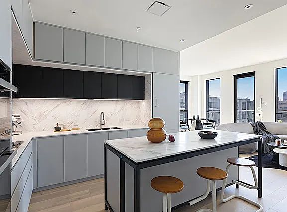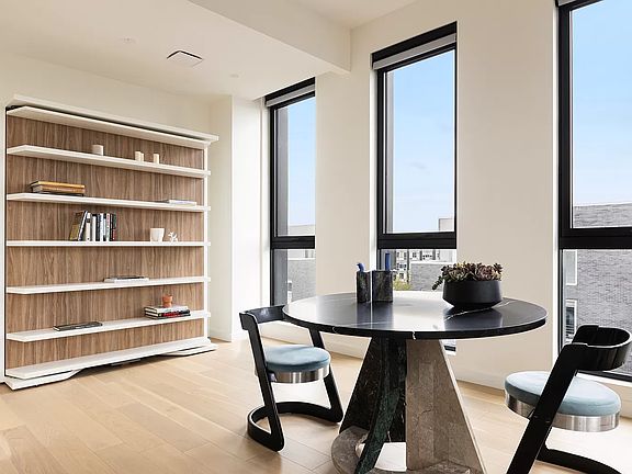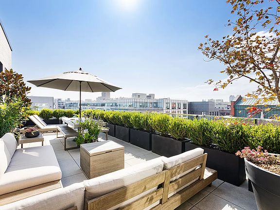 Corner, convertible 3 bedroom penthouse with 550SF terrace. Imagine an architectural masterpiece in Williamsburg where both the interior and exterior are designed by major architect, Morris Adjmi. The striking exterior contextually fits into the neighborhood and feels similar in material, tone and texture to the surrounding 19th century row homes and warehouses. This place, known simply as NX, is located at 215 North 10th Street, and is a stunning addition to the unique vernacular that defines Williamsburg. The benefit of working with an intellectual architect is that the interior reflects the modern industrial elegance of the exterior but at the same time embodies every conceivable stealth wealth cue, including close to 1500 square feet of light-filled, oak-planked penthouse-level expanse; southern & eastern-facing framed floor to ceiling windows; ten-foot ceilings, stunning lime washed bathrooms, private parking, built-in sound attenuation and a spectacular private terrace spanning 550 square feet. Naturally every detail - meaning material, fixture, appliance underscores a sense of serene and sophisticated luxury. Think Bosch, Miele, Kohler and Laufen. Visualizing oneself in Penthouse C in Adjmi's NX, is to also picture oneself enjoying a leading role in Williamsburg's new heritage. Today, Williamsburg is world-famous, known for its artistic, entrepreneurial vibrancy. What this means in real life is Michelin restaurants, including Aska & Meadowsweet, curated boutiques lining Wythe, Bedford, North 6th, North 4th streets, destination coffee including Hungry Ghost, farmer's markets, cheese purveyors, McCarren Park, mini-Basel art galleries, absinthe-proffering cocktail bars, late-night energy on the William Vale or Hoxton rooftops and so much more. In PH-C, one finds a distinct feeling of personal domain, one that can build upon the buzzy energy outside if desired or envelop you in a tranquil sanctuary. Two oversized bedrooms, 2 wellness-first bathrooms, chef's kitchen as ready for a dinner party as for delivery from Peter Luger are matched by the long vistas looking South and East. A stunning 550 square foot terrace features 2 entrances, from the living room or the primary bedroom. Adjmi's nuanced design is seen throughout, including his own custom designed anthracite fixtures in the kitchen and baths, the Italian Volakas marble counters in the kitchen that meld seamlessly with the Italian-made ceiling-high cabinetry; custom-fitted, locking closets; walk-in pantry and a sun infused dining space. The latter can also serve as a private library, work from home office or third bedroom. NX offers a full panoply of superior amenities, including a fully staffed Lobby, dedicated climate controlled storage; Fitness club with Mirror, Peloton and Tonal services; communal sun terrace with outdoor grills, shuffleboard (!), grass lawn. Ultimately, Penthouse C at NX is the rare opportunity to actually make one's best life come to life. Please note the parking can accommodate up to two cars and is available for purchase.